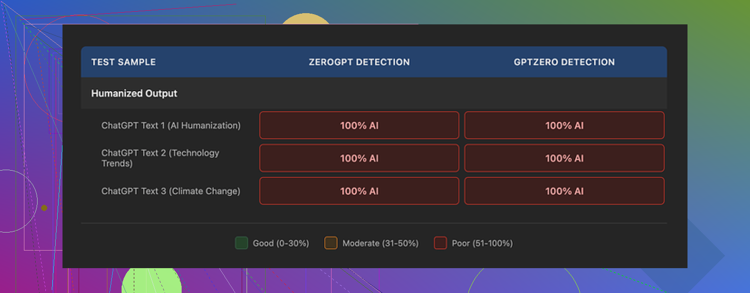 Both gave 100% AI probability on every Ahrefs humanized sample I tested.