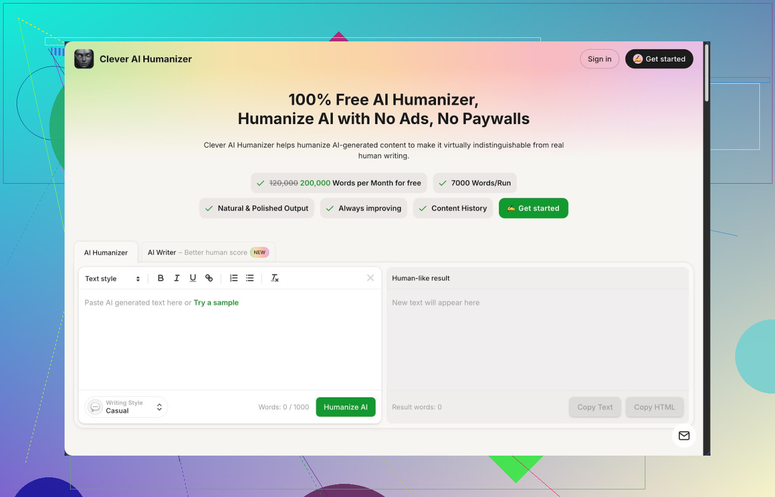 - そのテキストを Clever AI Humanizer に送り、カジュアルスタイルで人間化