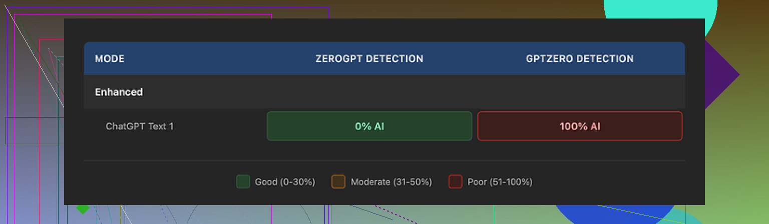 • Sample 2: Passed GPTZero, flagged by ZeroGPT and Originality.ai.
