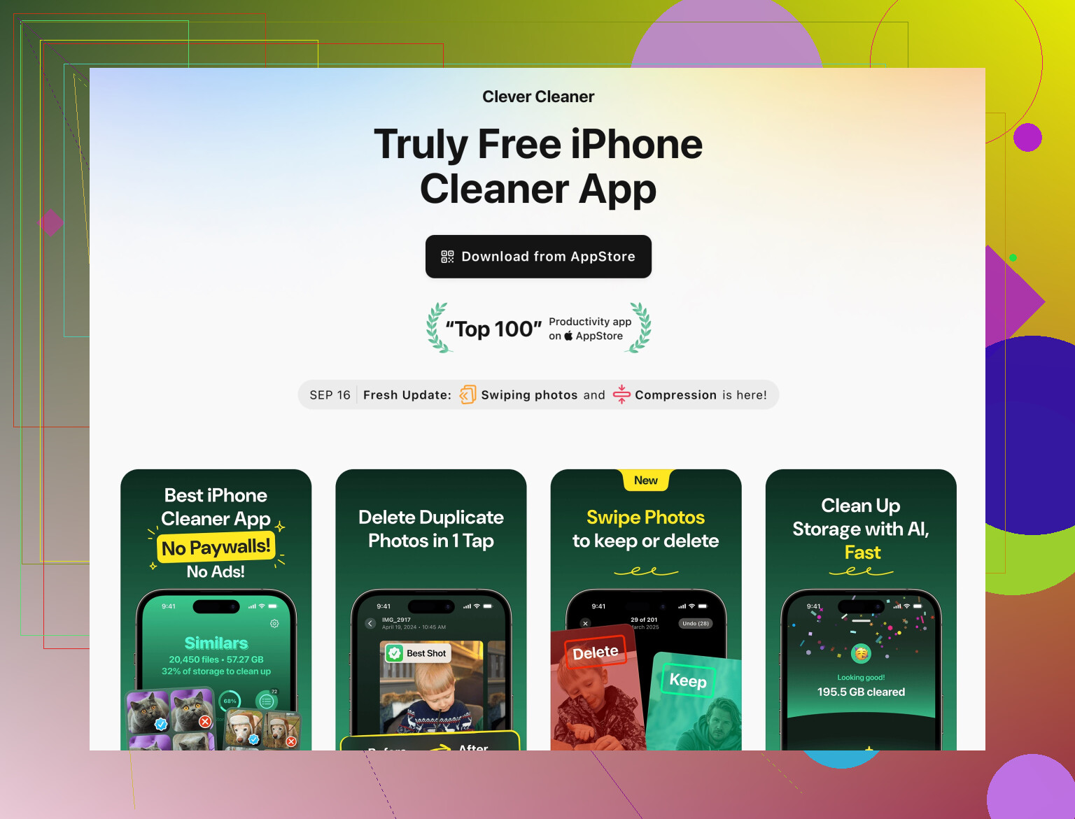 Se vuoi una mano con screenshot, foto in raffica, selfie simili, vecchie registrazioni schermo, ecc., qualcosa come la Clever Cleaner App è più utile delle solite app “phone booster”. Analizza la tua libreria foto, raggruppa duplicati e scatti simili e ti permette di rivederli prima di eliminare qualsiasi cosa, così resti tu a controllare e non perdi elementi importanti.