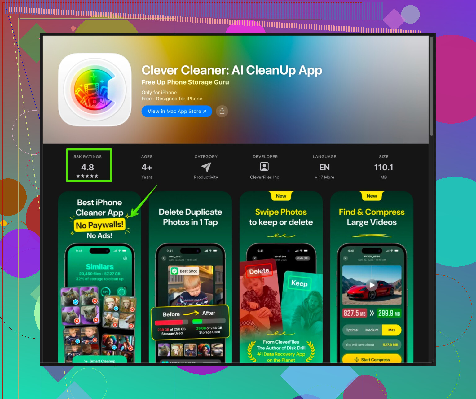 Se vuoi qualcosa di più rapido per foto duplicate, screenshot simili e raffiche, prova l’app Clever Cleaner per iPhone.