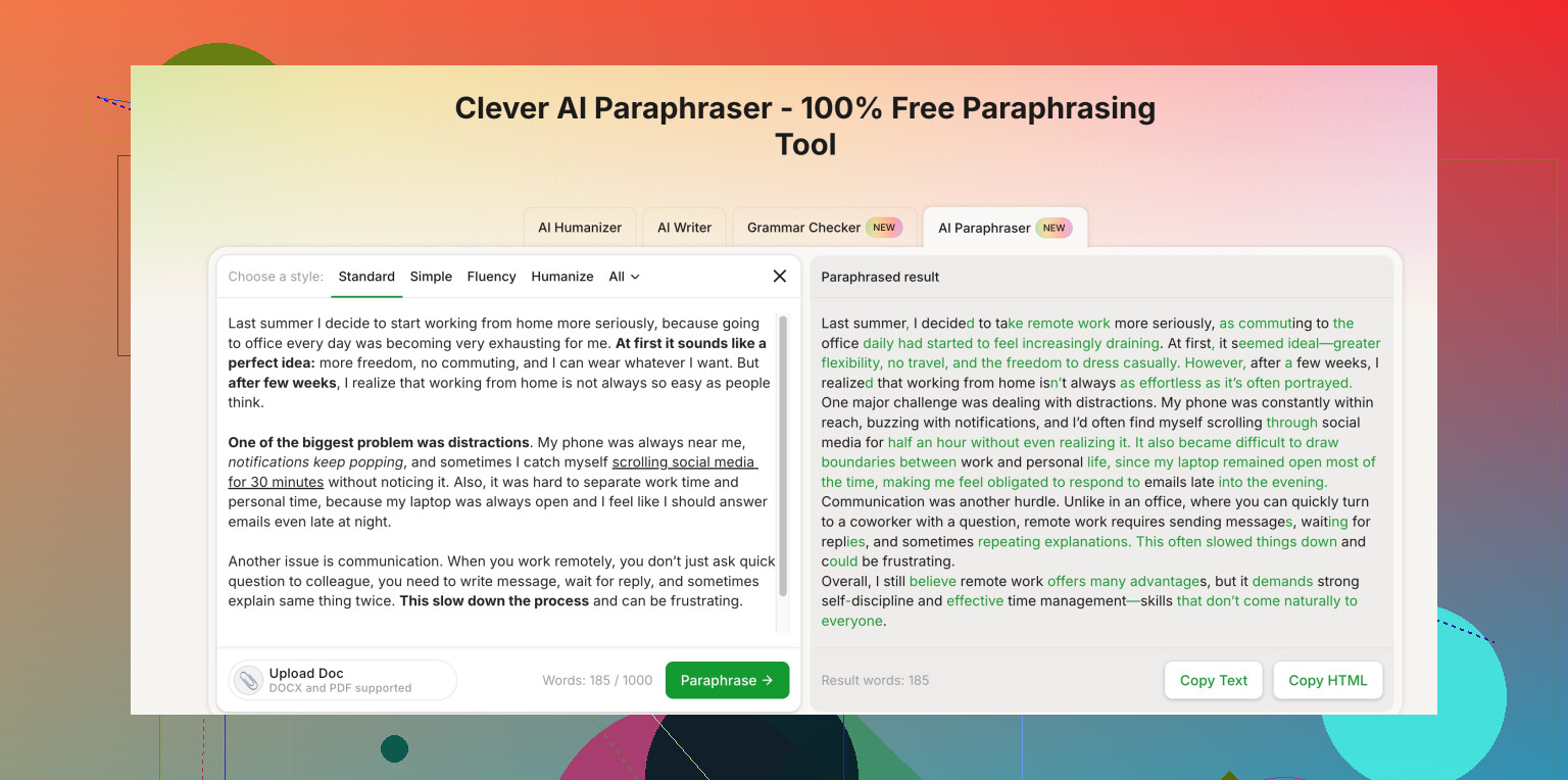 Clever AI Humanizer can help keep paraphrases from sounding stiff.