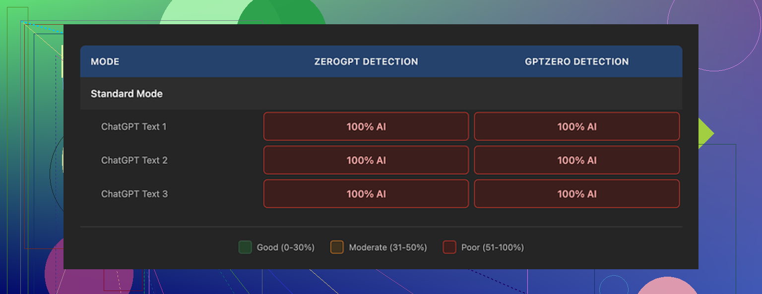 The deeper patterns stayed. The rhythm, phrasing, and structure still felt like typical large model output. Detectors locked onto that every time. No matter how many times I tweaked prompts or switched modes, it kept that same “AI spine” under the nicer wording.