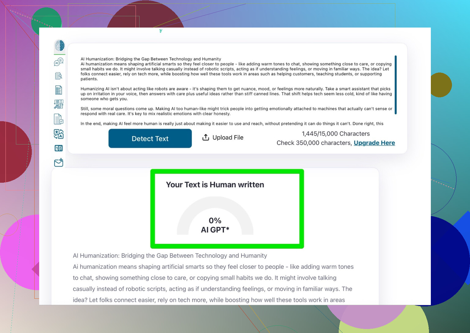 Honestly? The outcome was more disappointing than a ‘promised release date’ from your favorite game dev. The AI detector scores didn’t budge. On top of that, Walter Writes started spitting out bizarre, intentional misspellings (yep—actual typos). Stuff like “humna” instead of “human.” If you’re publishing for SEO or submitting college essays, might want to think twice before trusting a random app to ‘fix’ your writing with obvious errors.