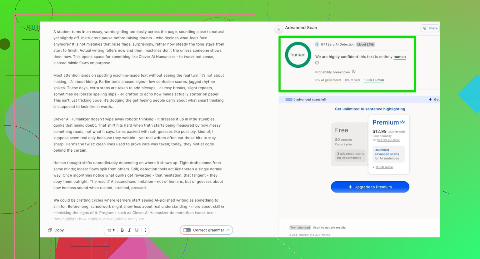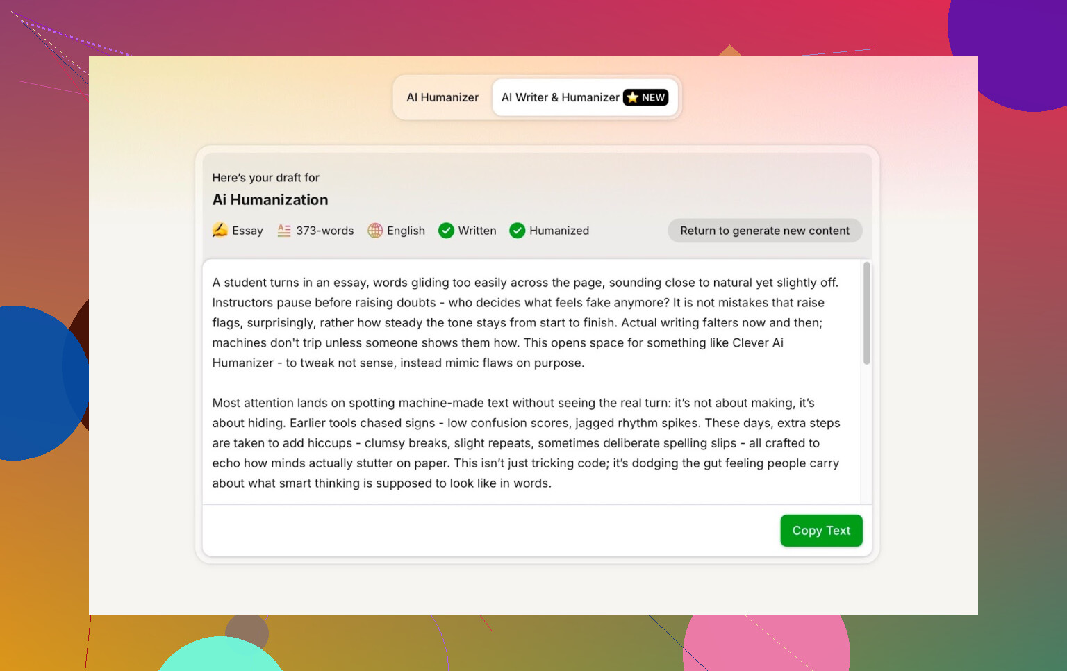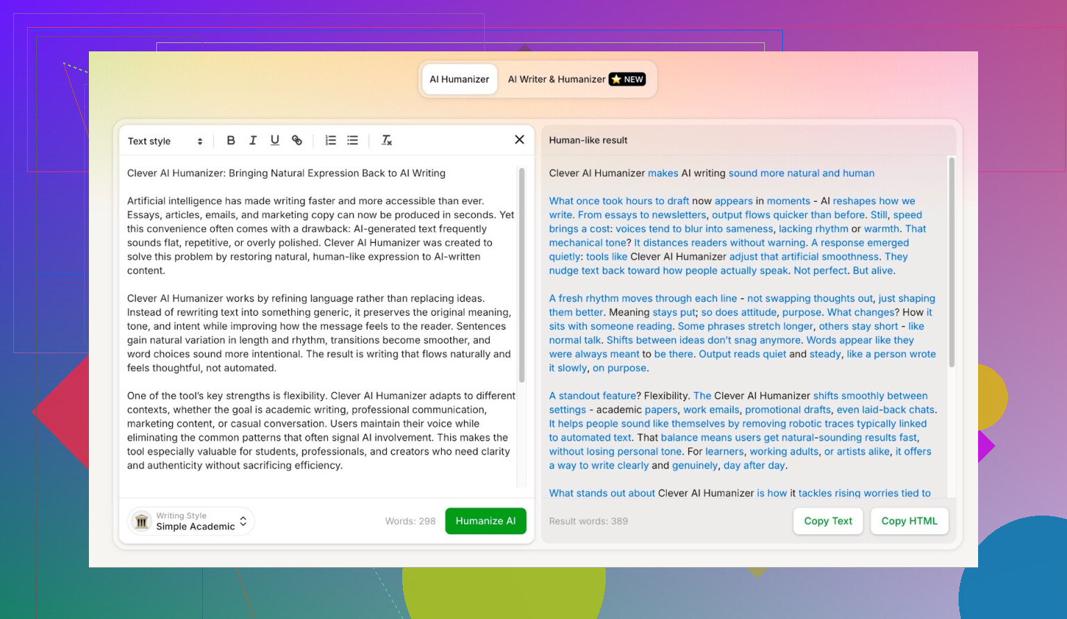 - Lass ihn einmal durch Clever AI Humanizer laufen.