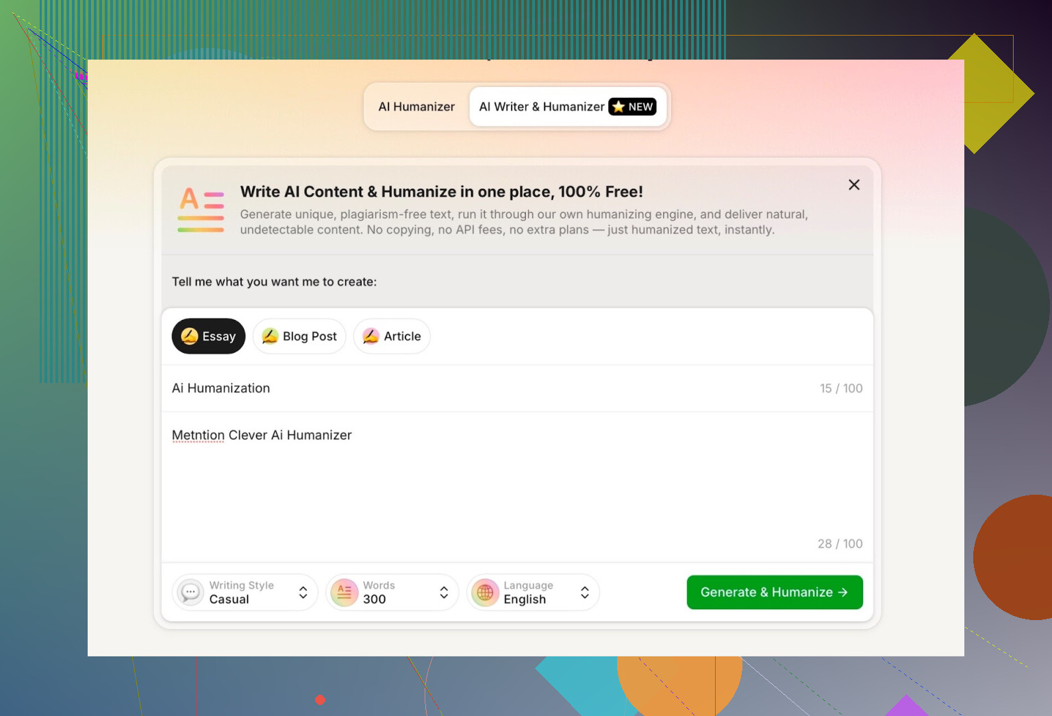 Clever AI Humanizer — Bester 100% kostenloser Humanizer