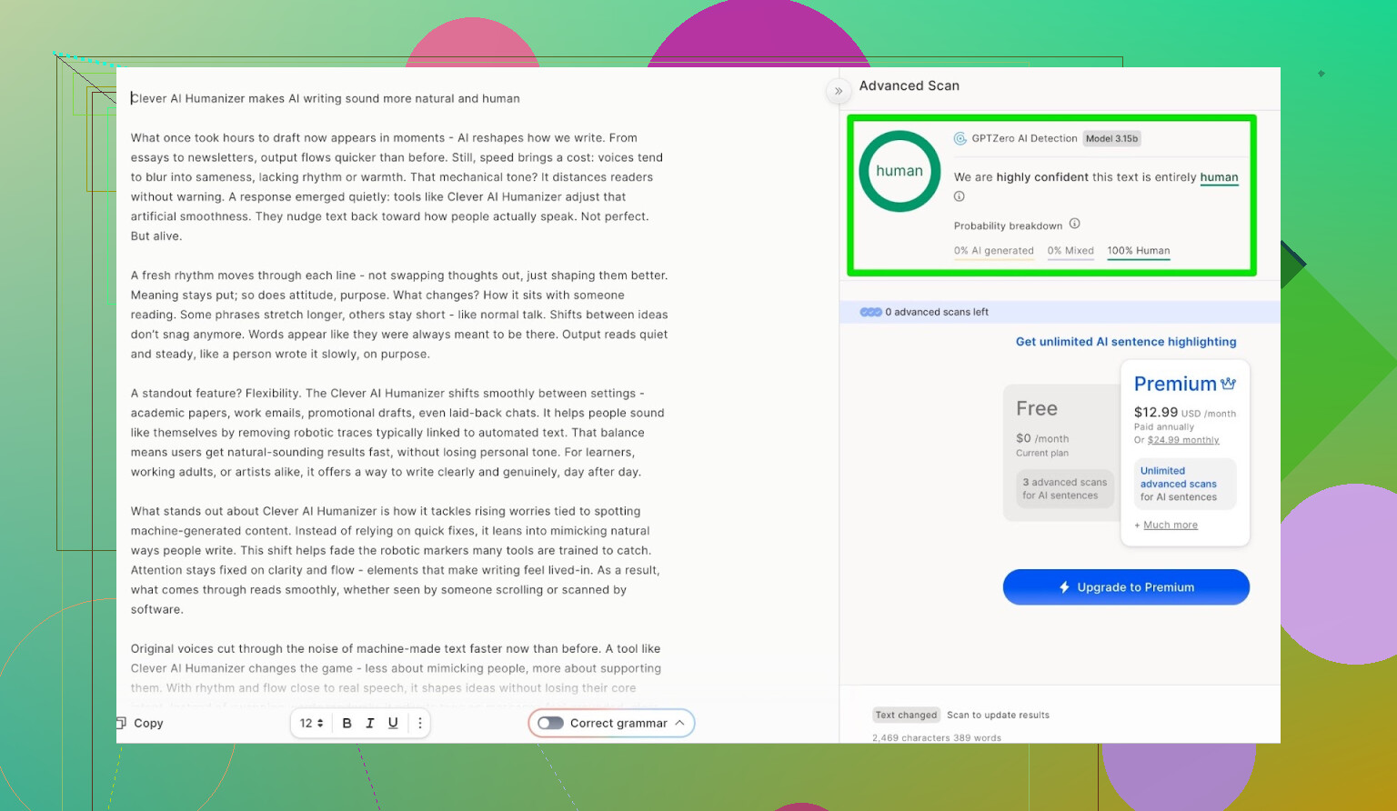 Dann ist Clever AI Humanizer lohnenswert und meiner Erfahrung nach derzeit eines der besseren kostenlosen Tools.