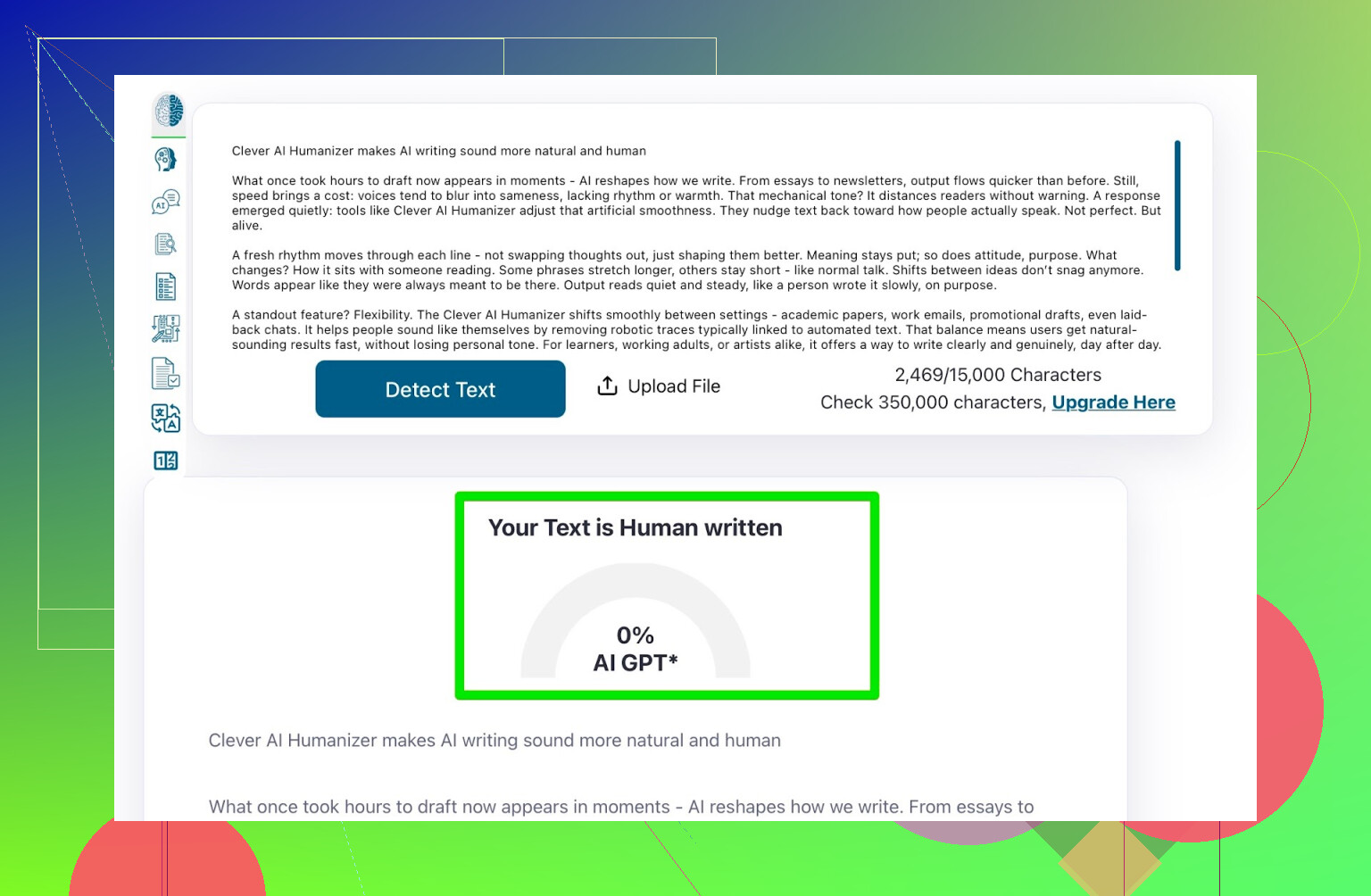 Im Vergleich zu den Erfahrungen von @nachtdromer und @shizuka würde ich sagen, sie sind etwas stärker auf Detektoren fixiert, als ich es wäre. Mir ist wichtiger, ob ein menschlicher Lektor oder Kunde den Text auf den ersten Blick akzeptiert, und weniger, ob ich einen spektakulären „0 Prozent AI“-Screenshot bekomme. Nach diesem praktischeren Maßstab lohnt sich Clever AI Humanizer weiterhin, solange du ihn als Filter im Entwurfsprozess siehst, nicht als Ersatz für deine eigene Stimme.