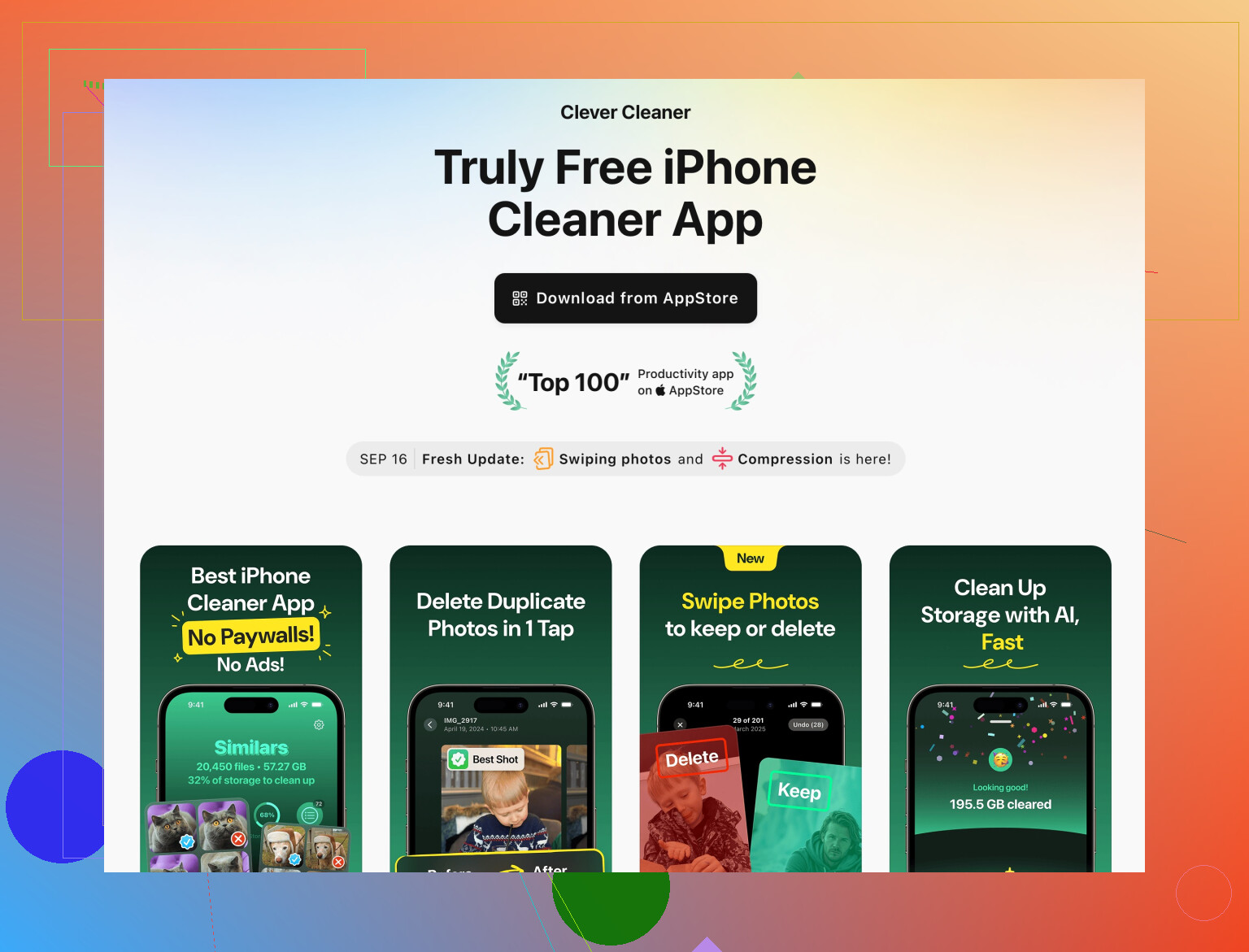 Een goede optie op iPhone is de Clever Cleaner App voor grondige iPhone‑opschoning. Die richt zich op:- Vinden en verwijderen van dubbele en bijna‑dubbele foto’s