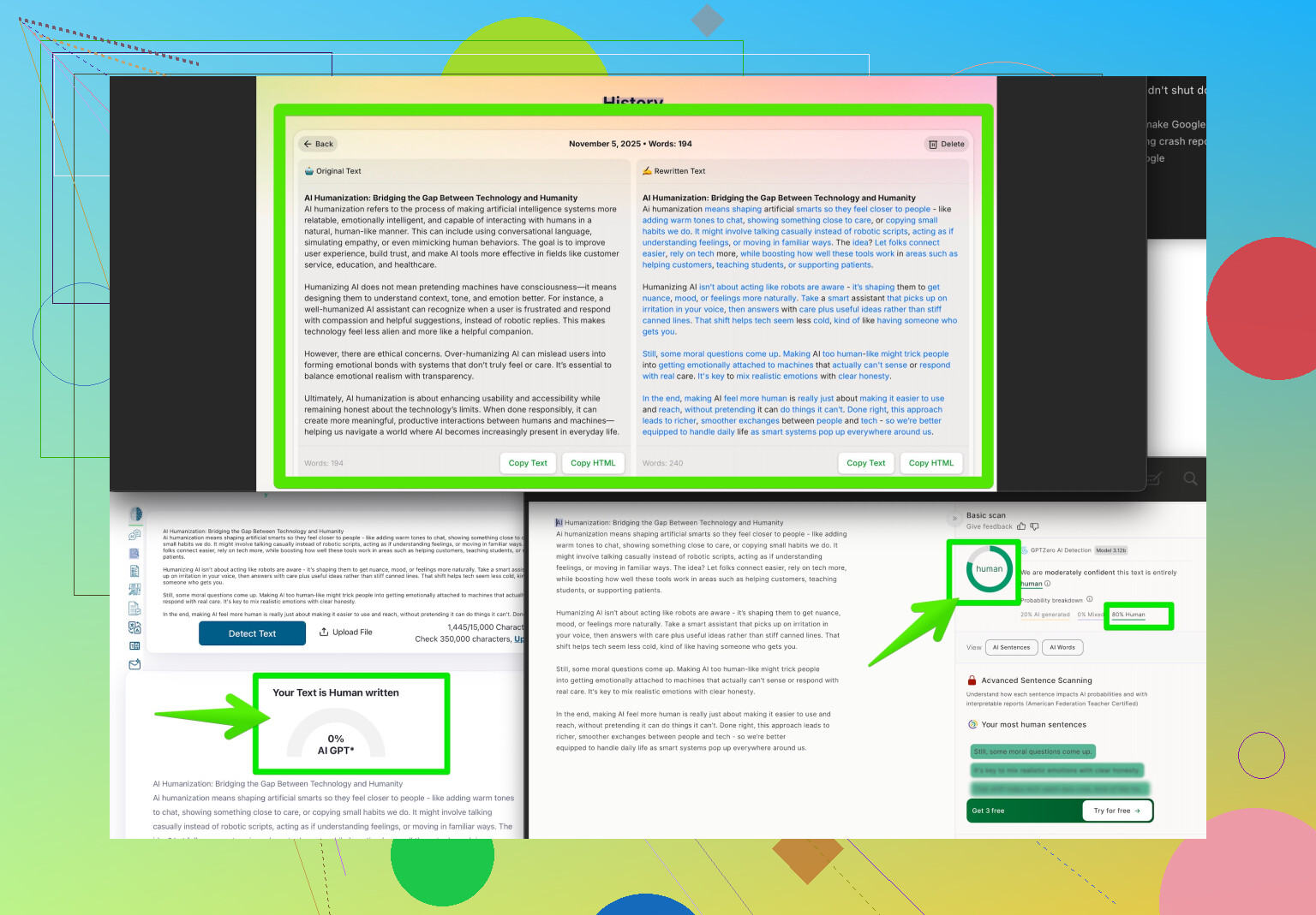 Bottom line: Don’t overthink it, don’t let the noise rattle you, and remember these detectors aren’t infallible (or even that smart sometimes). If you want to be extra sure, the Clever AI Humanizer tool can help calm your nerves, but just being yourself in your writing goes a long way too.