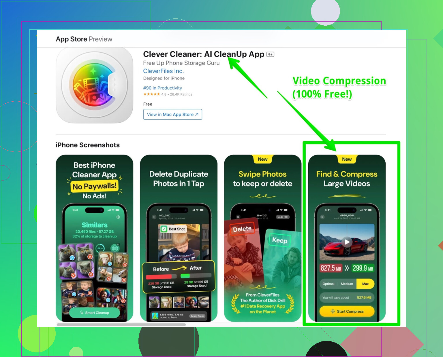 Okay, I saw what @mikeappsreviewer and @cazadordeestrellas said. Clever Cleaner app is solid for painless, fast video shrinking (plus bonus points for killing off duplicate photos and those multi-GB Live Photos you forgot existed). For anyone not wanting to mess with settings or spend 45 mins geeking out over bitrates, yeah, use it. The fact it’s not a paywall trap like most “free” iPhone tools is some kind of minor miracle.