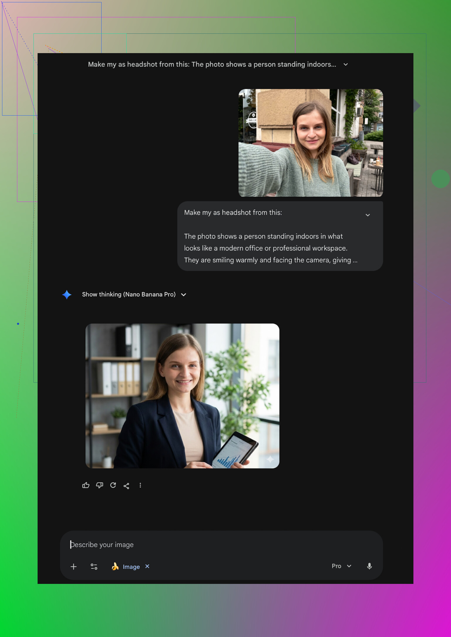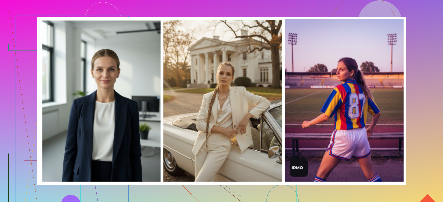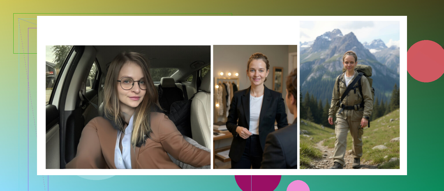 Office, casual, startup vibe, “fake magazine cover”, all kinds of backgrounds. Felt more like picking outfits from a rack than fighting prompts. -