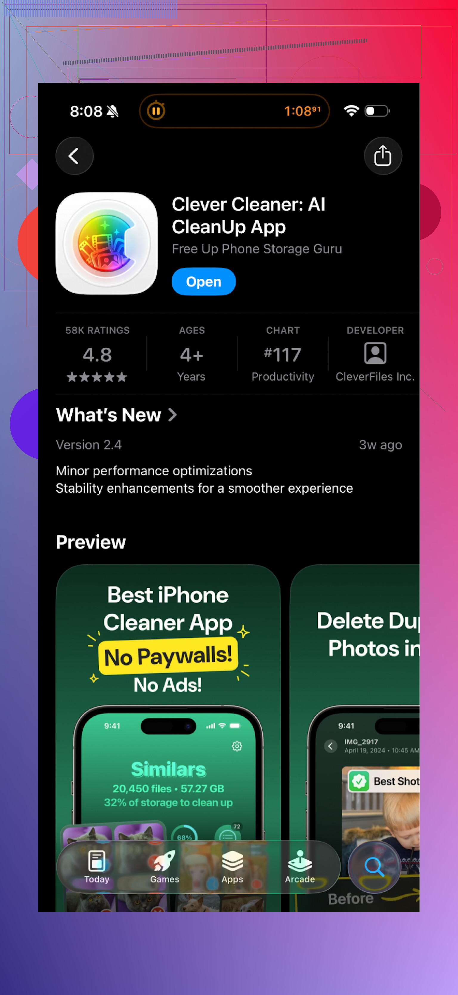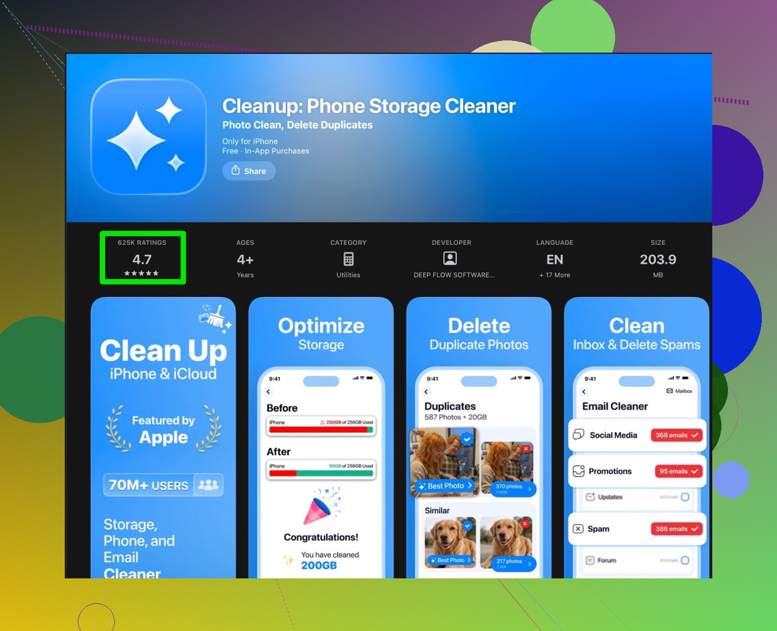 I installed Cleanup App (Phone Storage Cleaner) after my iPhone started yelling about low storage every other day. Photos would not sync, videos would not download, and iOS kept nagging me to manage storage.