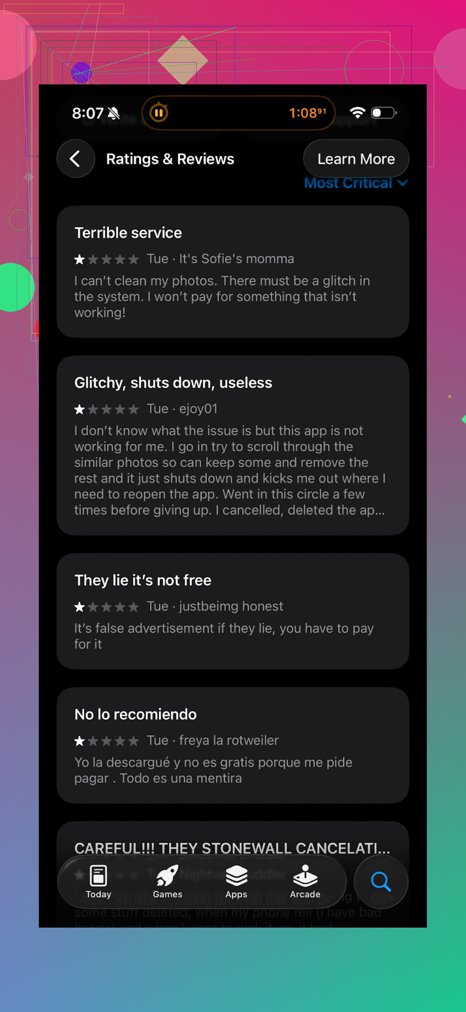 It is not a straight scam, but it leans hard into “oops, I forgot to cancel” revenue. If you are the type who taps fast, this app is not your friend.