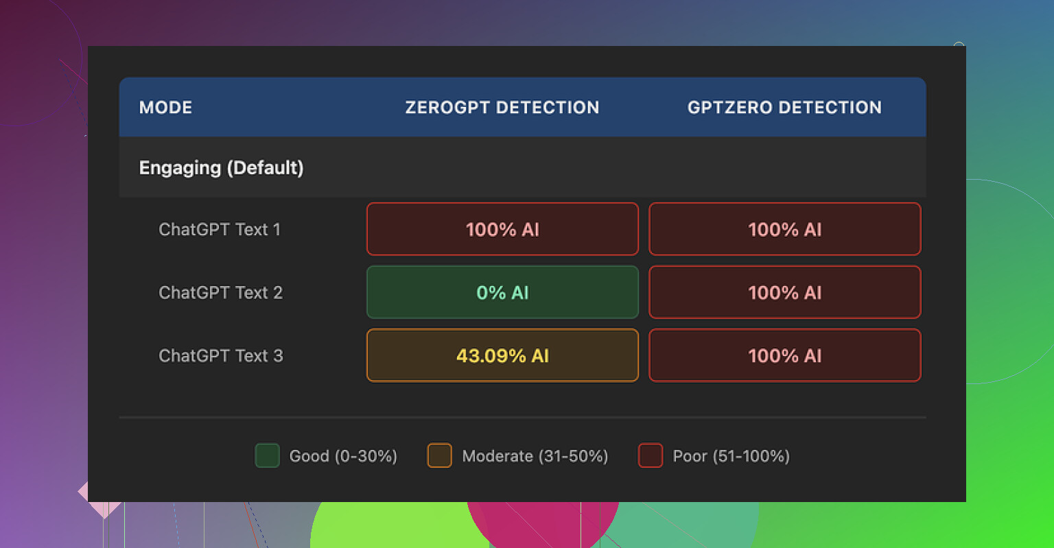 I ran three different texts through the Writesonic humanizer. Nothing fancy, regular informational content. Then I checked each result against multiple AI detectors.